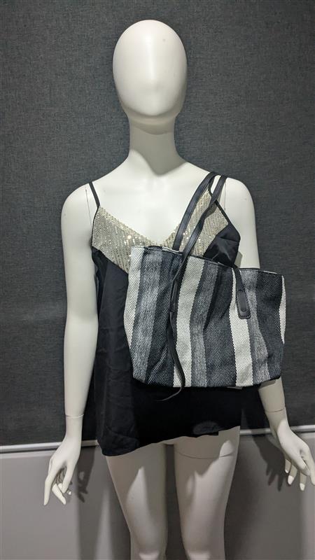 Add an artisanal touch to your look with this bold striped raffia shoulder bag, crafted from handwoven textures in a mix of earthy and metallic tones. The patchwork design creates a statement piece that perfectly balances traditional craftsmanship with modern style.