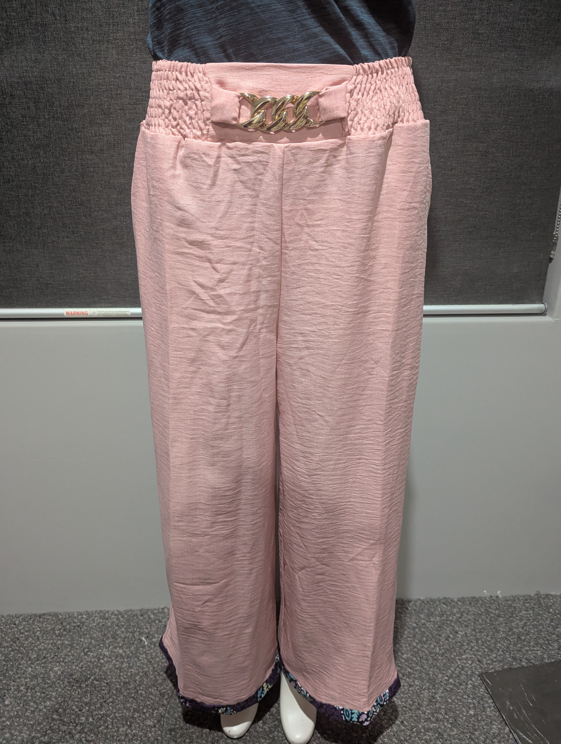 Elevate your everyday style with these Blush Pink Wide-Leg Pants with African Print Hem. Designed for both comfort and sophistication, these pants feature a flattering smocked waistband that hugs your waist while offering a relaxed, flowy silhouette. The eye-catching gold chain belt detail adds a touch of luxury, while the African print trim along the hemline introduces a bold pop of color and heritage-inspired charm.