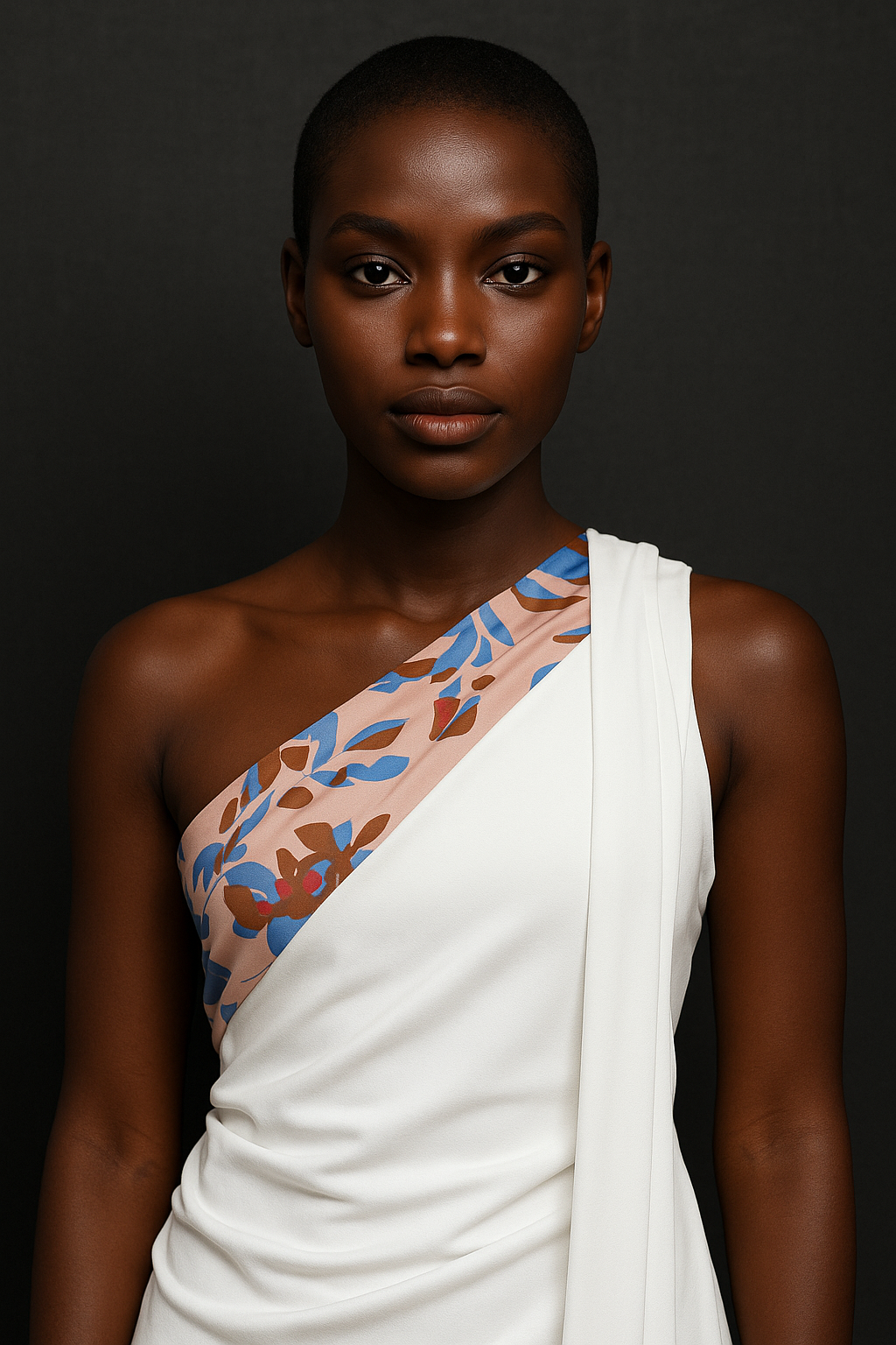 One-Shoulder Top with African Print Accent