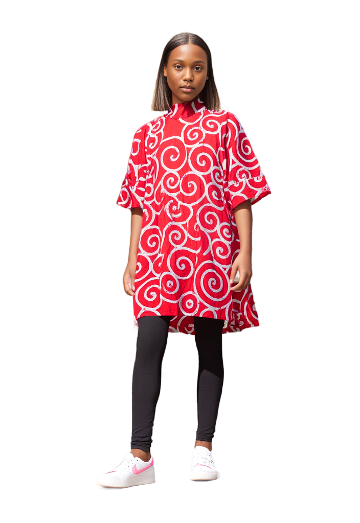 Afro Modern Red Spiral Print Tunic Dress