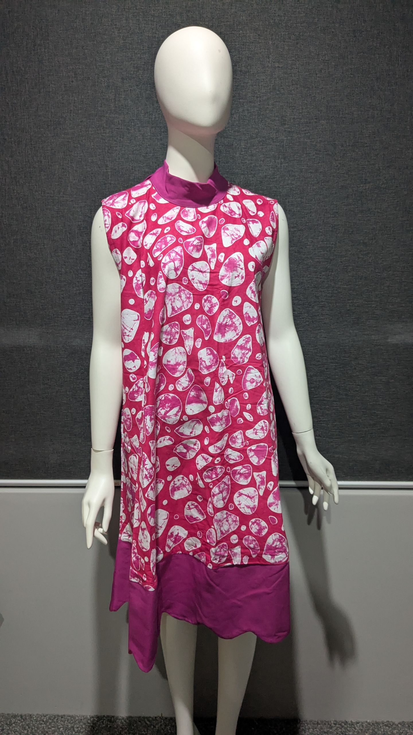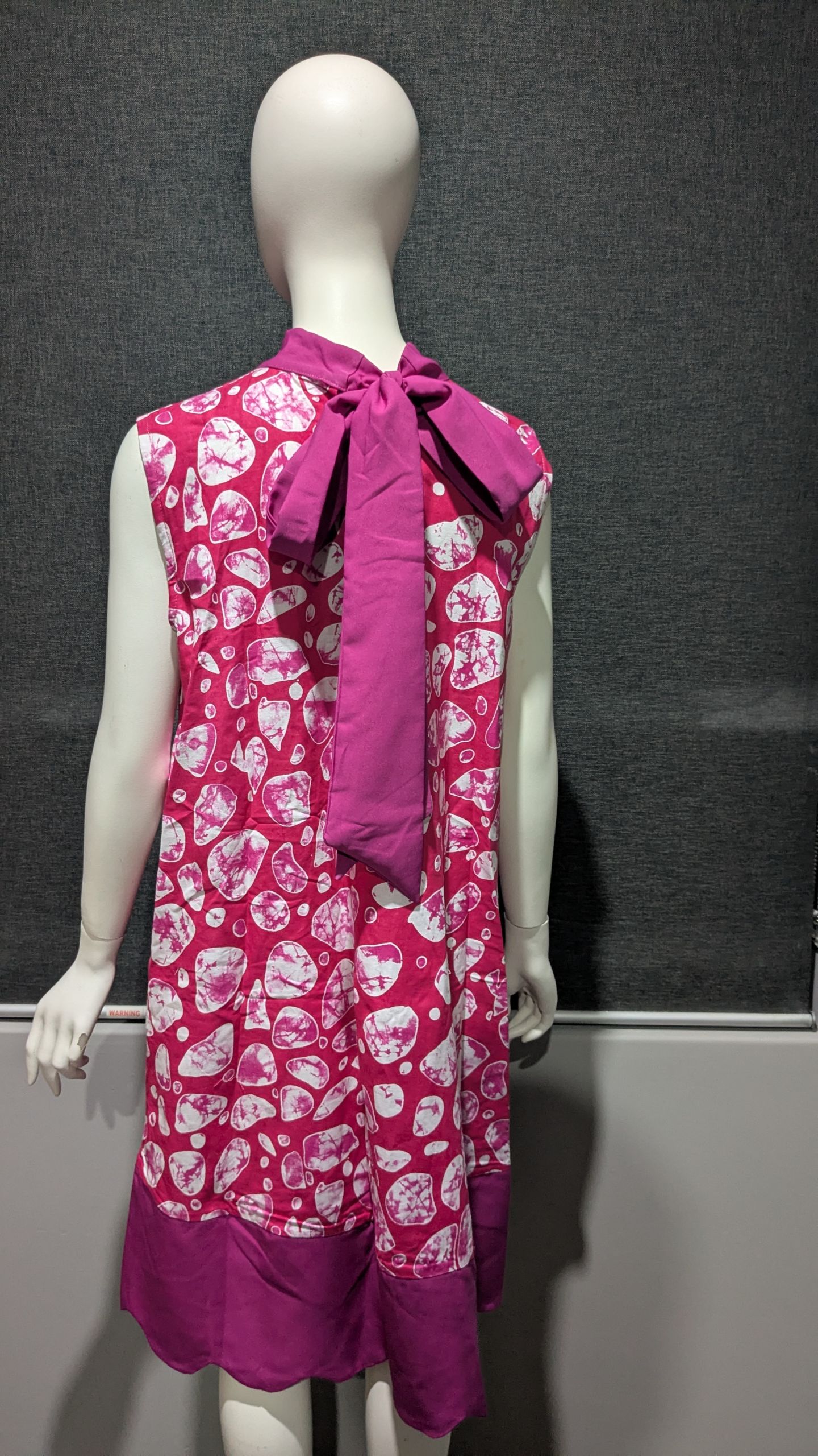 Celebrate your individuality with this stunning Afro Modern Pink Circle Print Mini Dress. Crafted from lightweight fabric, it features a playful pattern of white circular motifs over a bright pink base — a contemporary nod to African-inspired prints. The sleeveless cut and high neckline add a touch of sophistication, while the midi length gives it a youthful, urban edge.